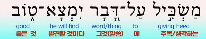 보면 그것에 말씀에 “따발” “다바르”라고 하는 바로 여기에 있는 이 단어인데요. 이 “따발”이라고 하는 단어는 “따발”이라고 하는 단어는 “그것”으로 번역할 수도 있고, “말씀”으로도 번역할 수 있는 단어가 바로 이 단어입니다. 그래서 “말씀”에 주목하는 자는 좋은 것을 발견할 것이다. 그렇게 번역해도 되고, “그것에” “사건에” “물건에” 주목하는 자는, 그것에 주목하는 자는 “좋은 것을 발견할 거다”라고 번역도 가능한 말이 바로 오늘 19장 20절의 말씀입니다. 히브리어 “다발”이라고 하는 게 말이라고 하는 의미도 있고, 어떤 “그것”(thing)의 의미도 있기 때문에 그렇습니다. 그러니까, 이 말씀 가운데 여러 가지 가능성들이 있는 것이죠. 무엇에 주목하는 자가 좋은 것을 얻게 되는가? 첫 번째로는 “하나님의 말씀에 주목하는 자가 좋은 것을 얻을 수 있다”라고 번역도, 해석할 수도 있고, 두 번째는 하나님의 말씀이 아니라 “사람들이 하는 말”에 주목하는 사람이 “좋은 것을 발견할 것이다”라고 하는 말로도 해석이 가능하고, 또 하나는 어떤 “사건”이나 “일들”을 그냥 대충대충 하는 것이 아니라, 집중하고 주의하면서 심사숙고하면서 처리하고, 일을 신중하게 하고 하는 사람이 좋은 것을 발견하게 될 것이라고 하는 그런 의미, 세 가지 의미로 번역이 다, 해석이 다 가능한 것이라고 할 수가 있겠습니다. 하지만 뒤에 있는, 그런데 뒤에 있는 걸 보면, 뭐라고 나와 있냐면은, “여호와를 의지하는 자는 복이 있느니라”라고 하는 말이 있기 때문에, 그 뒤에 있는 말하고 연결시키면, 우리가 맨 처음 생각한 게 맞습니다. 우리가 하나님의 말씀을 주목하며, 그리고 하나님의 일을 깊이 생각하고, 여호와를 신뢰하는 자가 좋은 것을 얻을 것이라고 하는 그런 의미로 이해할 수가 있겠습니다. 그렇죠? 우리는 하나님의 말씀을 묵상하기도 해야 되고, 하나님의 뜻이 무엇인가를 생각하면서, 그 뜻대로 순종하며 나아가는 일을 하는 것이 그게 복된 일입니다. 이 세상 사람들이 말하는 대로 끌려다니는 것이 아니라, 이 세상 사람들이 이게 좋다고 하면, 거기 따라가고, 저게 좋다고 하면 따라가는 인생이 아니라, 정말 내 생각에 이렇게 되면 망할 것 같은데, 이렇게 되면 아무것도 안 되는 것 같은데 할지라도, 하나님께서 하신 말씀이라고 한다면, 하나님의 뜻이라고 한다면, 그 말씀을 신뢰하고 따르는 자가 그게 복된 자이고 그게 승리하는 자라고 하는 사실을 우리가 기억해야 할 것입니다.