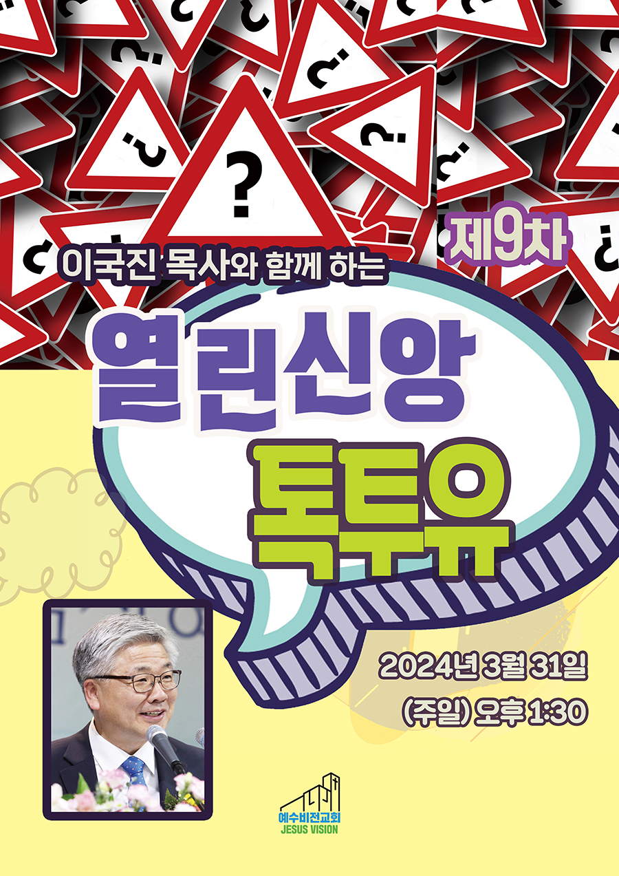9차 열린신앙 톡투유 admin 2024-03-13 행사 안내 0 댓글 글 내비게이션 Previous Previous post: 수요예배 실시간 영상 (24. 3. 13)Next Next post: 어떤 예수님을 따르나요? (막 8:27-34) 답글 남기기 응답 취소이메일 주소는 공개되지 않습니다. 필수 필드는 *로 표시됩니다댓글 * 이름 * 이메일 * 웹사이트 다음 번 댓글 작성을 위해 이 브라우저에 이름, 이메일, 그리고 웹사이트를 저장합니다. Current ye@r * Leave this field empty