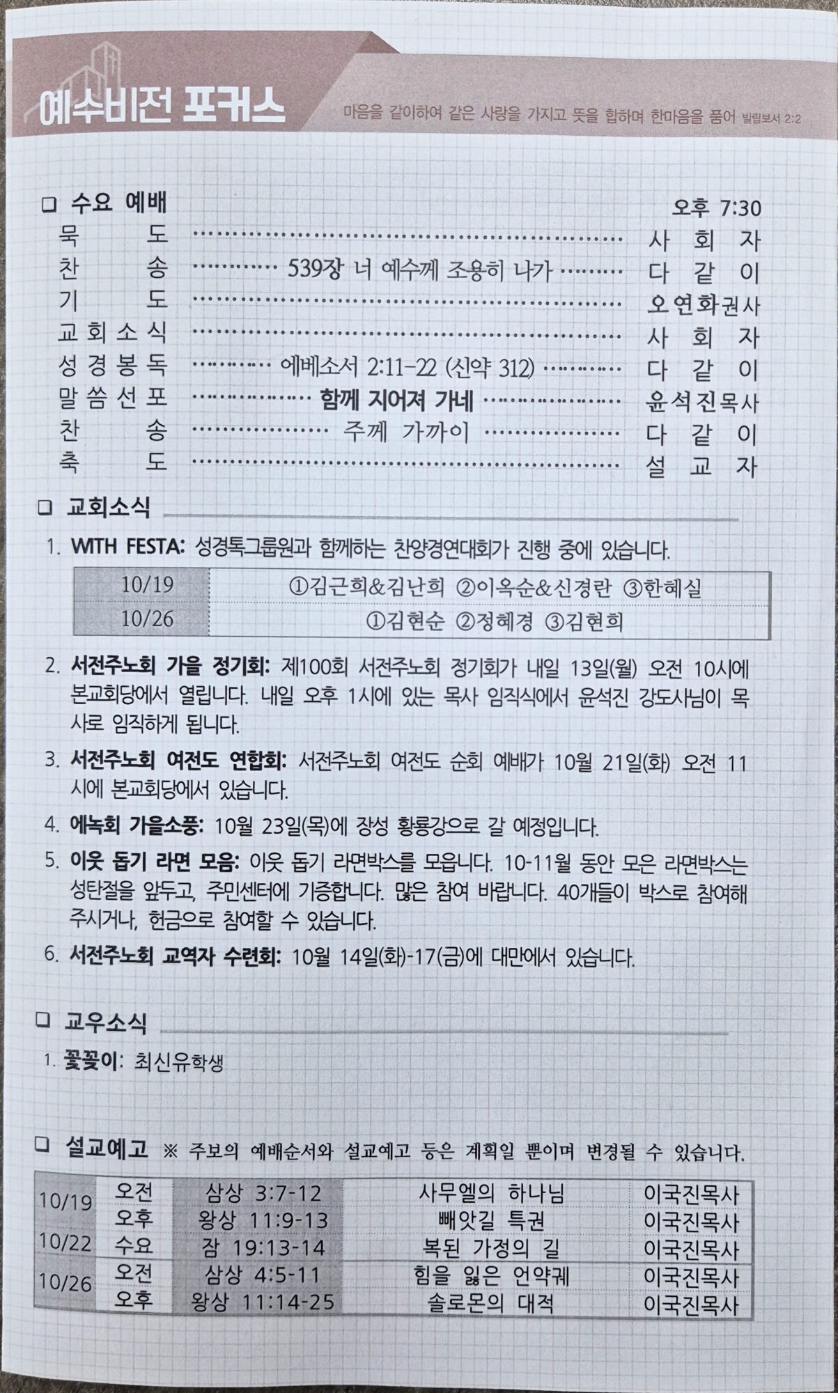 10/26①김현순 ②정혜경 ③김현희 - 서전주노회 가을 정기회: 제100회 서전주노회 정기회가 내일 13일(월) 오전 10시에 본교회당에서 열립니다.